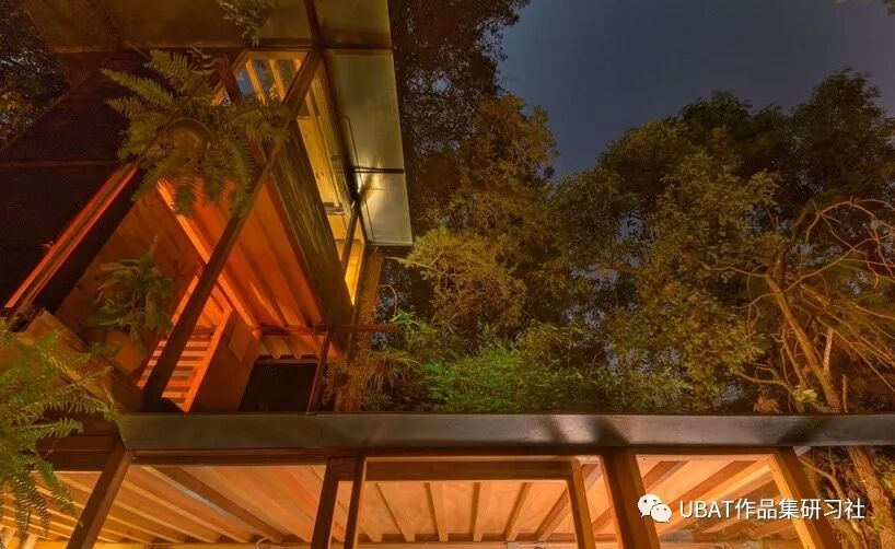 树屋设计为露天开放时,在屋里任何角落都可以体验到大自然的气息,设计师为了尽可能额减少对周围环境的影响,提高的建筑的高度,最大限度的减少了占地面积。屋顶还配备了一个太阳能板和雨水收集系统。