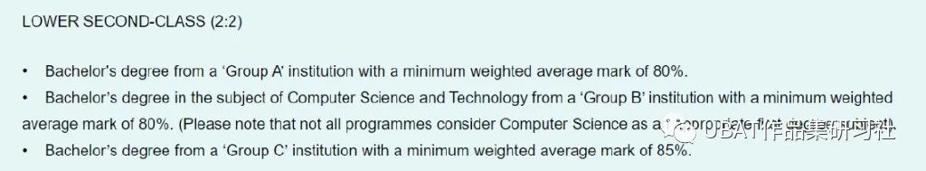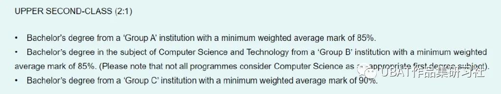 按照新政策,大家在申请UCL的研究生时,所在的本科院校将被分为A类,B类和C类。A类大学放眼望去大部分不是211工程就是985工程和双一流大学。另外,并非所有来自这些项目的大学都被列入“A类”。而B类大学则相对较少,主要针对申请计算机技术与工程方向专业有所要求。UCL把所有受到中国教育部认可的其他全日制本科大学都将被归为C类。