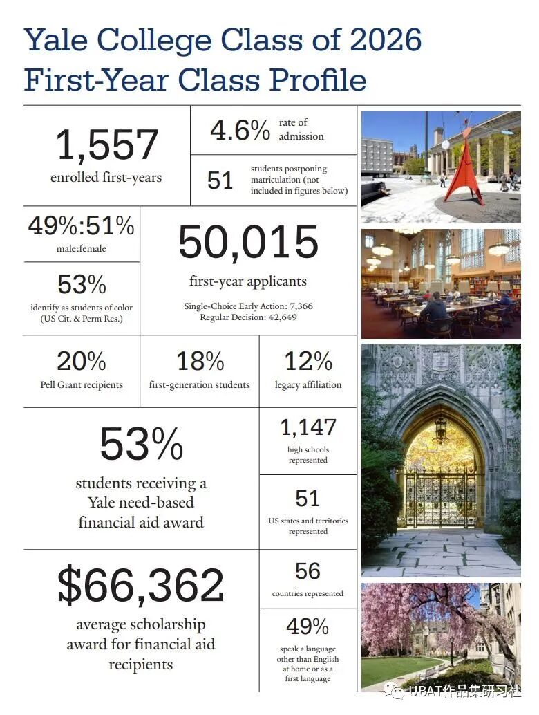 排在第 5 位的耶鲁大学,也发布了 2026er 的新生画像,数据还整得挺好看。