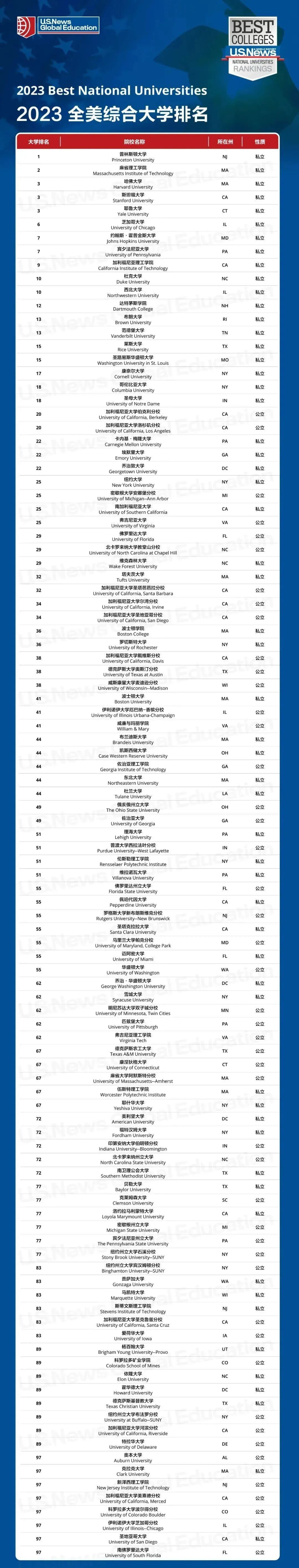 中秋假期最后一天,U.S. News官方最新发布了2023年美国大学排名(2023 Best College Rankings):普林斯顿第一,哥大爆冷跌出前 10 …每年选择前往海外留学的学生都会以U.S. News排名作为择校风向标,选校是一个艰难的抉择,而U.S. News历经36年历史的院校排名系统可以为广大学子提供一个权威的参考。在前100位大学排名中,依然被大家所熟知的老牌名校占据,但是今年部分学校的排名相比2022年榜单有了一些调整,下面来一起看一看吧!