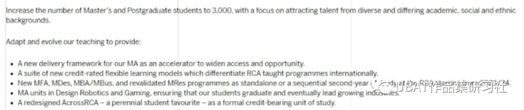 除了一些“建设领先的创意教育、推动跨学科合作、致力于人类正在面临的气候危机、老龄化、人工智能等等多个挑战”。皇艺直接表明了接下来会将学生规模扩充至3000人,吸引更多来自不同学术背景、社会背景、以及不同民族的学生。虽然这个扩招,看起来拿到offer的机会更大了,但是申请的激烈程度不亚于前几年,因为申请的人数越来越多,预计录取率反而下降了一些,另外皇艺很多专业也都变为一年制,也会吸引更多申请人、竞争演变愈发激烈。就像皇艺官网建议的那样,想要申请一定要趁早决定、趁早着手准备,这样你才有充足的时间完善申请材料,也能在一定程度上规避“临时搞事”带来的申请风险。