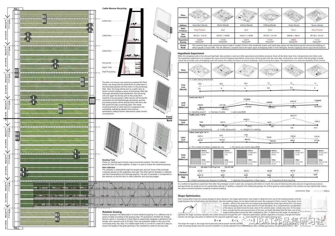 传统意义上的城市与乡村空间关系正在被颠覆,因为城市人口的增长超过了农业用地的产能及可使用率。快速的城市发展也加深了社会经济分层,使得低收入人群严重缺乏新鲜食品与充足饮食,从而制造了“食品公平”问题。同时,气候变化以及自然和人为灾害进一步威胁着我们的城市和粮食系统。总体而言,在生活的“生态”正日趋脆弱的今天,对于社会福利的关注以及对于更负责任的环境管理的要求必须受到同等重视。城乡空间的崩溃关系已经酝酿多年。自工业革命以来,城市与农村便于相互依存却又日趋分离的道路上发展;一方面,农村地区的农工综合体致力于最大限度提高产量和扩大耕地面积,另一方面,都市区则通过密集的人口数量孵化了创造/智慧型都市与工业制造的双头经济引擎。早在20世纪,这种双重动机就已开始产生矛盾;随着每个领域都在努力满足都市人口日益增长的需求,全世界的城市都开始扩张并寻找城乡之间的土地过渡地带,这种操作在挤压农村空间的同时,也增加了粮食生产与城市中心的交通距离。结果,农业被要求强化每一块耕地的产能,吞并之前被认定为不适合农耕的邻近未开发用地,也因为废物增加、化学处理、栖息地消失而对环境造成破坏性影响。社会需要传统农业的替代方案;我们必须寻求新的生产模式,并积极致力于研发多种农业战略和技术。我们必须从整体上开展应对措施,以此做为人类与环境的保险策略。本次竞赛要求创建一种新的城乡结合的原型,并挑战两者间双边关系的标准。我们寻求可以将城乡景观“折叠”起来的一种范式,用一个整合的城乡基础设施(在所选取的背景下运用城市农耕技术),创造一个高产的、混合型未来。参赛者需观测6个平均人口密度在50,000人每平方英里的原型“城市”区。这6个“城市”区都必须坐落于选手所选择的特定环境之内并且符合研究城市农耕可能性及其参数的目的(例如,一个城市区域,现实中的城市,萧条/较小城市,农村地区,村镇)。参赛者应考虑水、能源、交通,及其对城市社会、政治、文化领域的横向影响。提交项目须提出一种新的城乡景观原型,并代入现实存在的条件,可以是一座城市,一个乡镇,或是城乡结合地带。你的论点须经过6个200’ x 300’ (60,000平方英尺)、平均人口密度在50,000人每平方英里的“城市”区测试。